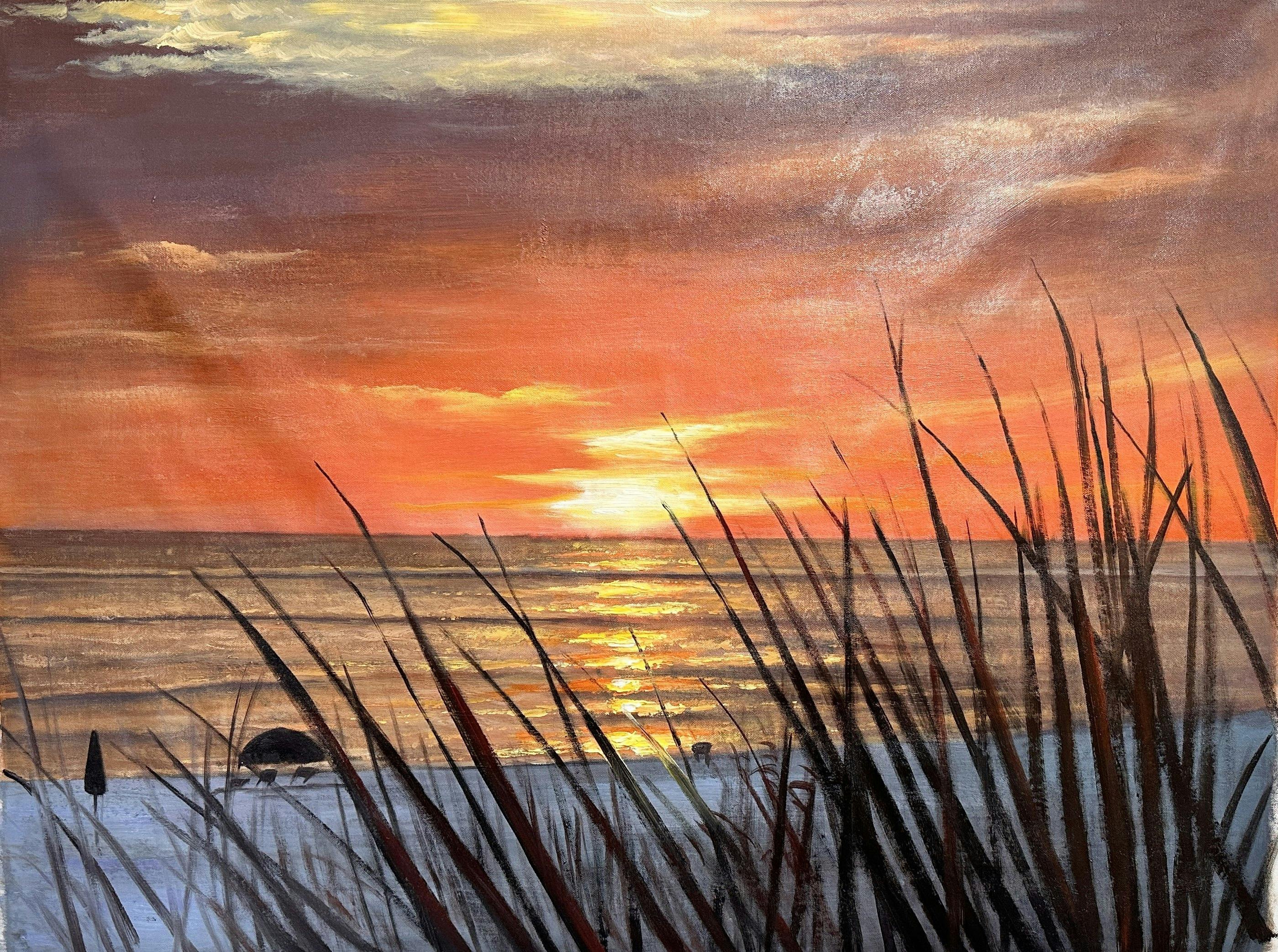 5/5 stars - Great painting of a sunset on water. Identical to the photo provided.- Robert from Centreville